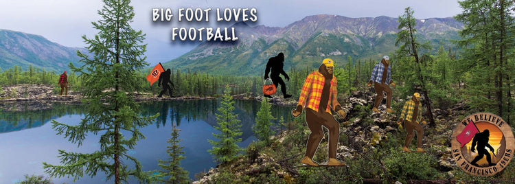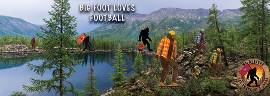 Bigfoot 12in Circle A 12" piece featuring a black Bigfoot holding a flag with your favorite team's colors and logo. The design includes a scenic sunset background, distressed wood pattern, team nam...